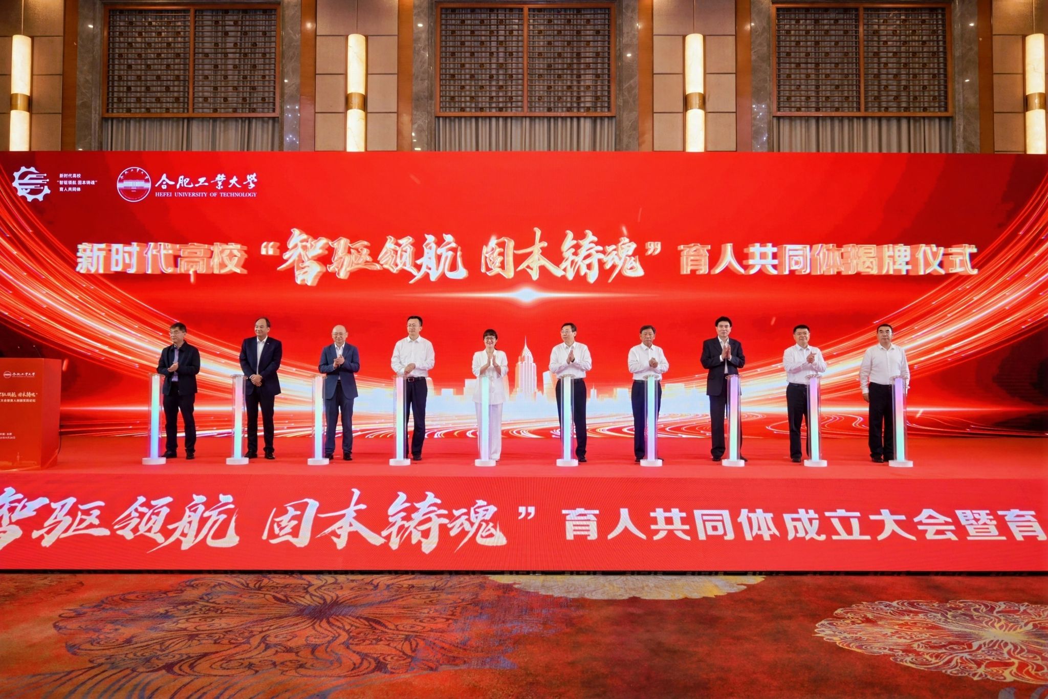 在全体与会嘉宾的见证下,孙芙蓉、范奇、于祥成、杨善林、项兴初、虞宝桃、陆林、蔡国军、叶盛基、孙炜共同为“智驱领航 固本铸魂”育人共同体揭牌。