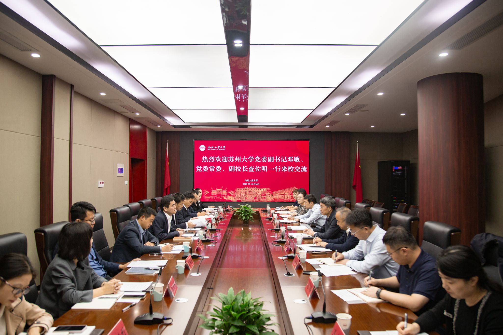 10月16日,苏州大学党委副书记邓敏,党委常委、副校长查佐明率队来校开展专题调研。校党委副书记严福平参加调研座谈会。
